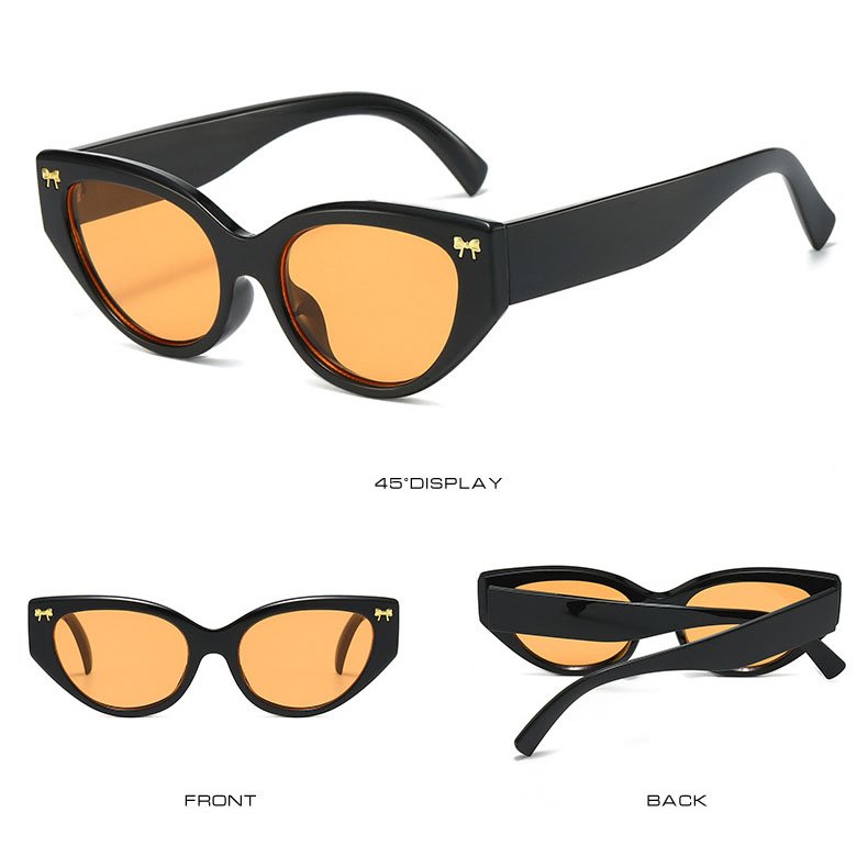 Enhancing the charm of the cat – eye frame are adorable bow – tie decorations, delicately placed on the corners. These charming accents not only make the sunglasses stand out but also add a hint of playfulness and elegance, making them a perfect accessory for various occasions, from casual outings to more formal events.